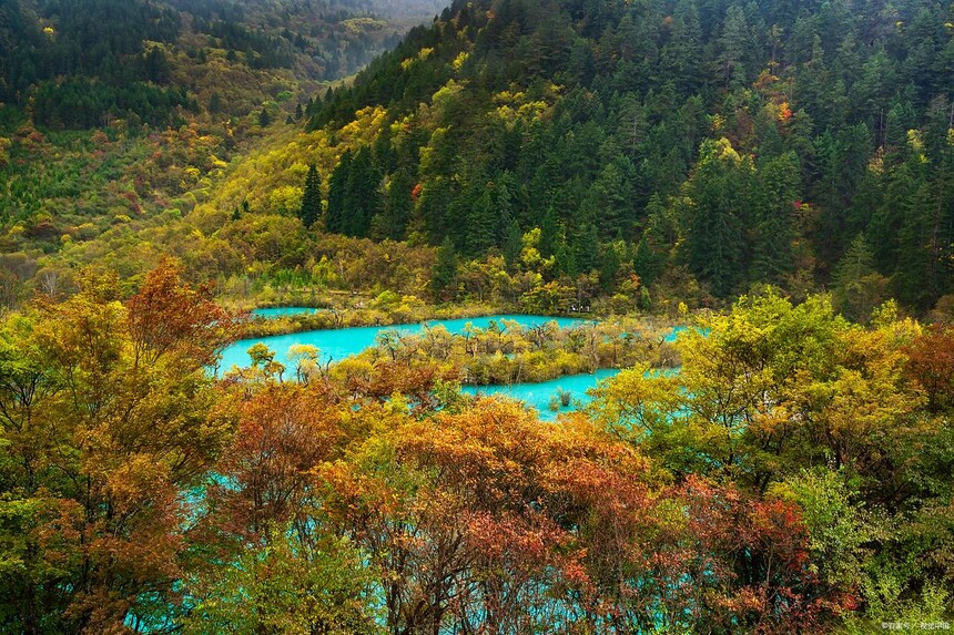 3. 四川九寨溝:水與秋色的極致融合 秋天的九寨溝,被稱作“人間仙境”。五彩斑斕的湖水配上金黃紅色的林木,美到窒息。 最佳時間:10月。 推薦玩法:游覽五花海、鏡海,拍一組秋日寫真。